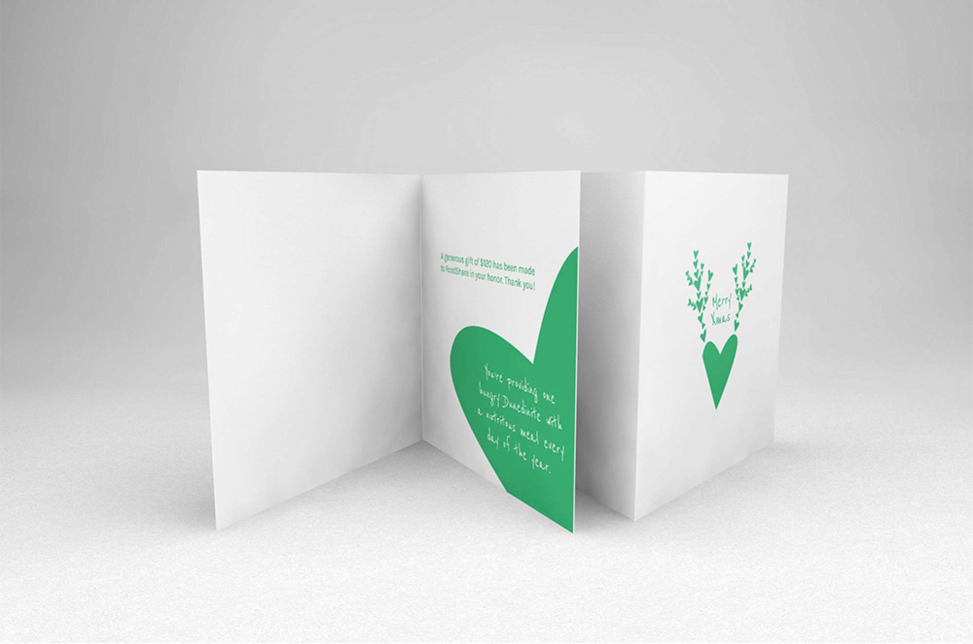 This Christmas, we’re offering a new way to make a generous donation to FoodShare, while bringing joy to you and your loved ones. How does it work? You make a donation on someone’s behalf, and in return receive a beautifully designed Christmas card to give to them, explaining just how much the gift in their honour will benefit families in need in the local community. Orders can be made via our Facebook Store and come in 4 different values: Christmas Card orders CLICK HERE